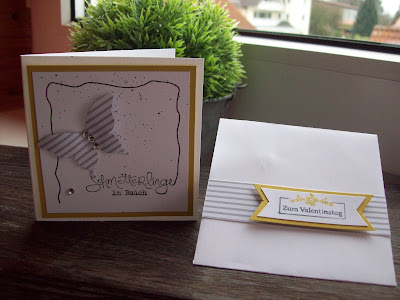 Heute habe ich einen Teil der Sale-a-bration-Stempel und der derzeit laufenden Angebotsaktion "Valentinsschatz" in Form von Minikärtchen ausprobiert. Diese kleinen Kärtchen kann man immer mal zwischendurch für alle möglichen Anlässe werkeln.